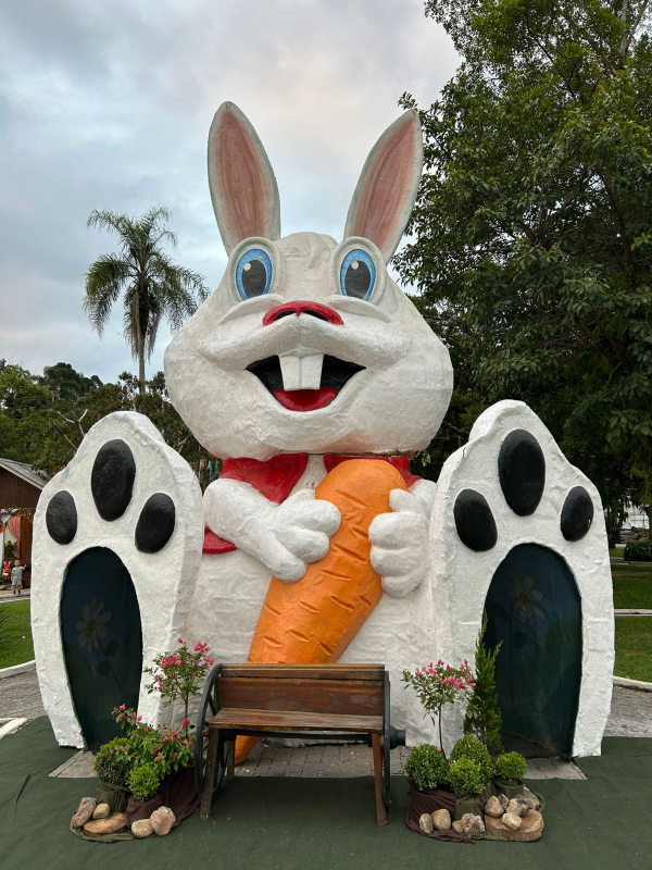 O evento será realizado na Praça Getúlio Vargas, nos dias 28 e 29 deste mês e 4 e 5 de abril, sempre a partir das 16h, reunindo atrações voltadas para toda a família. A programação contará com atividades recreativas e culturais, como pintura de casquinhas para as crianças, caça ao tesouro, apresentações de música, dança e teatro, além de um espaço especial para registros com o maior coelho de Páscoa de Santa Catarina, um dos destaques do evento (foto).