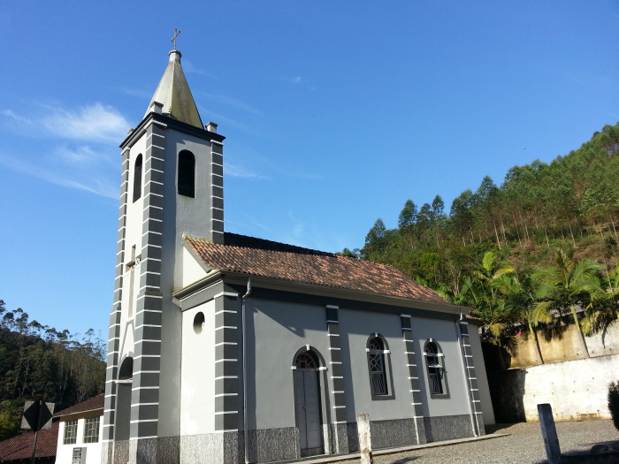 Digno de nota é a localização do cemitério. Já que, como dissemos, o lugar da igreja se encontra num estreito vale, o cemitério, localizado logo atrás da igreja, foi construído em vários patamares morro acima. A igreja tem uma bela torre, com sino de ótimo som. O altar é de tijolos rebocados, com as imagens da Sagrada Família e outras, sob uma cúpula com pintura também da Sagrada Família.