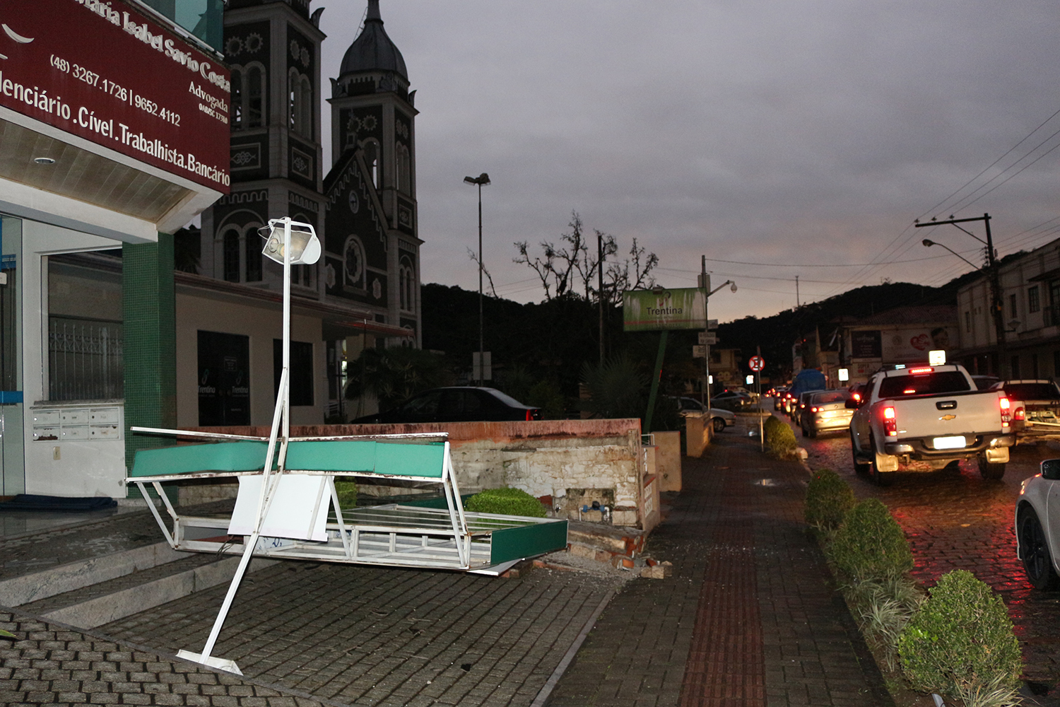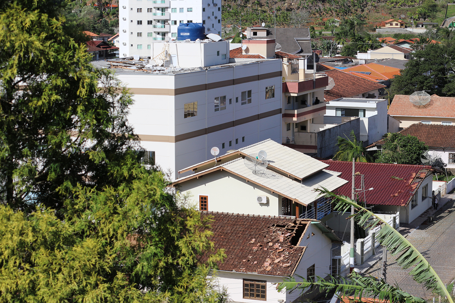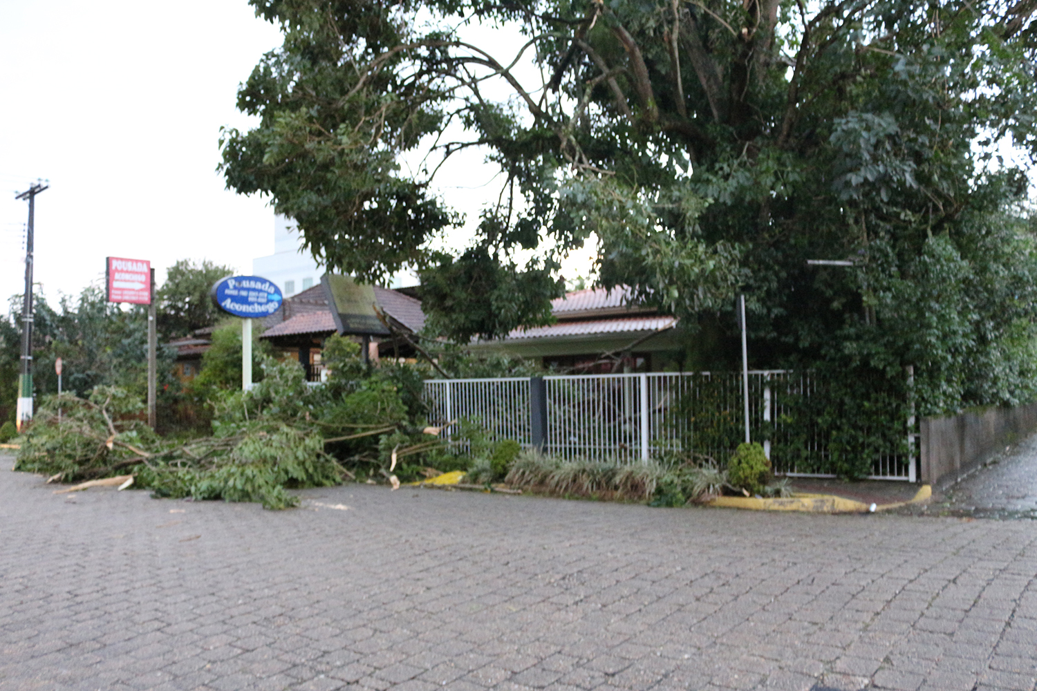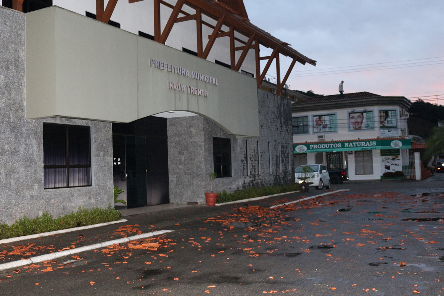 Em todas as ruas centrais foi possível ver, nesta manhã, muitos entulhos (cacos de telha e vidros) e placas de publicidade e transito, retorcidas ou no chão. Na Prefeitura os servidores compareceram, mas nada puderam fazer por falta de energia e necessidade de reparos e limpeza em várias dependências.