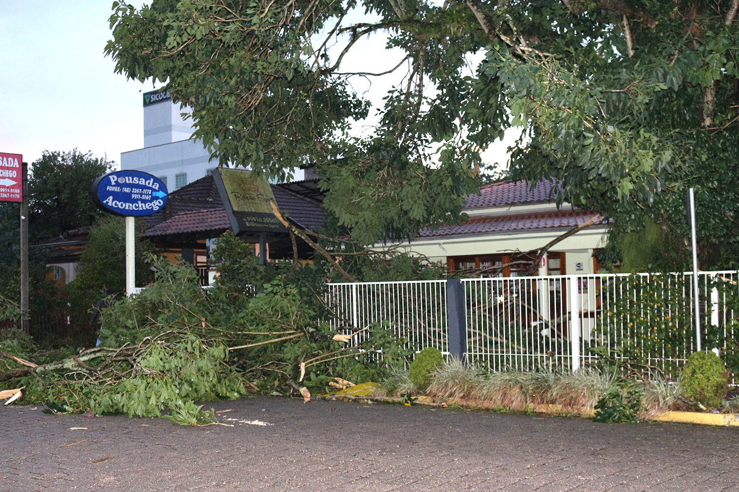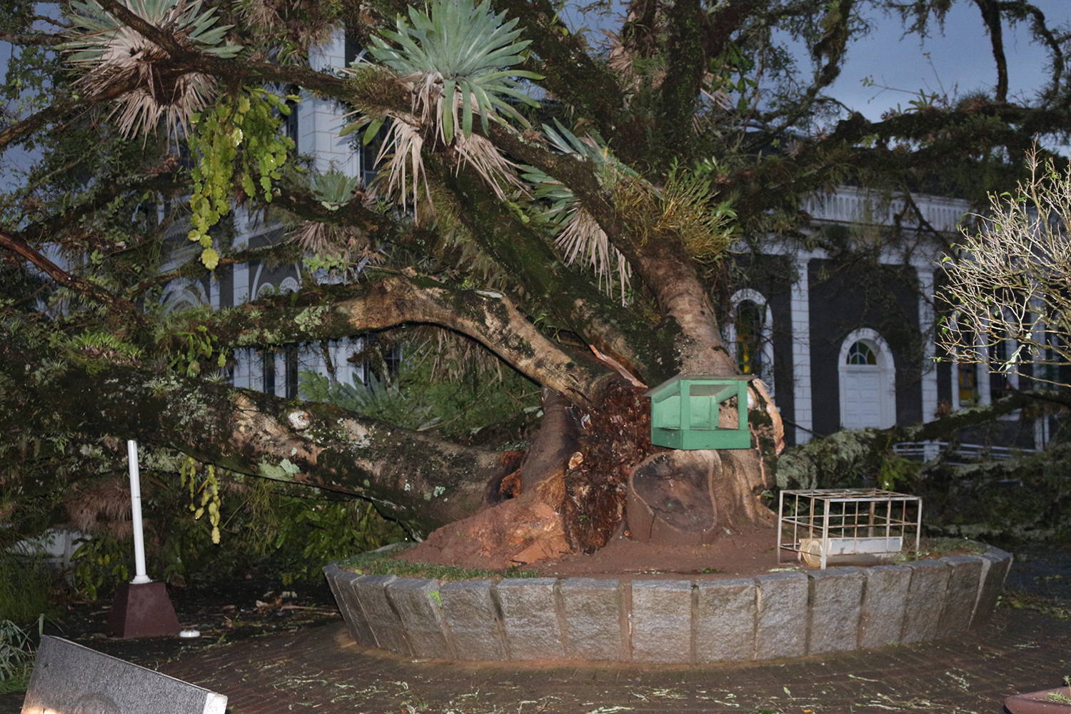 Outra arvore tida como centenária e que vai virar lenha é uma imensa figueira na Praça del Comune, em frente à sede da Prefeitura. O vento forte não conseguiu arrancá-la do chão, mas foi o suficiente para deitá-la. O mesmo destino teve outra grande figueira, ao lado do posto de saúde do bairro Besenello, nas proximidades da Rodoviária. Caiu sobre as instalações do posto, que teve que suspender o atendimento.