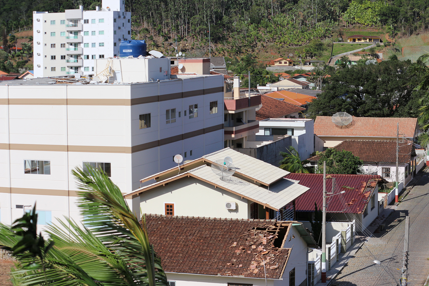 Todo o município está sem energia desde o início do temporal. A Celesc não garante seu retorno durante o dia de hoje uma vez que o temporal atingiu também outras cidades do Vale do Tijucas, como São João Batista, Canelinha e Tijucas. A empresa informou que está iniciando os reparos por Tijucas e, em sequência, nos demais municípios.