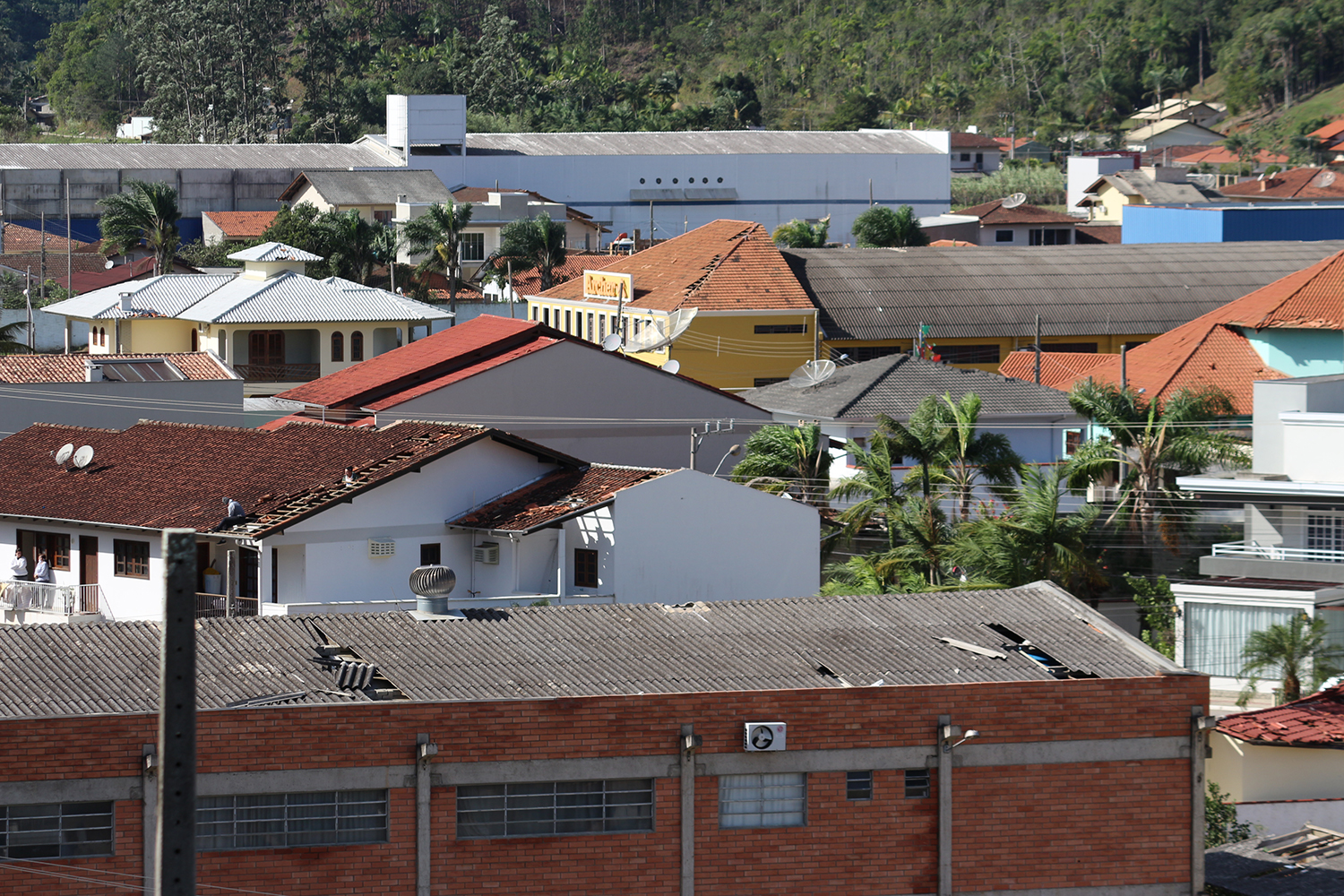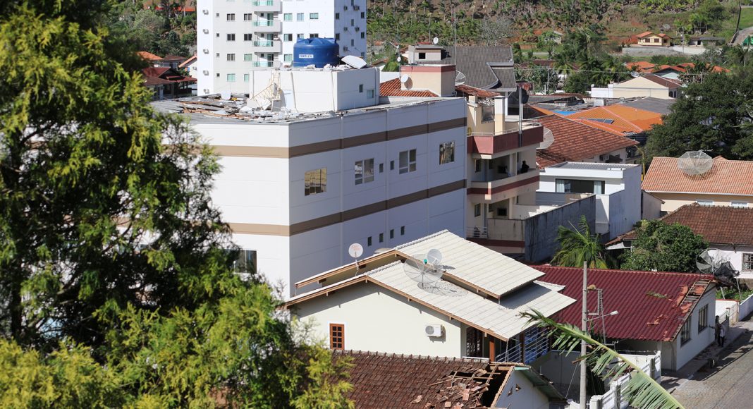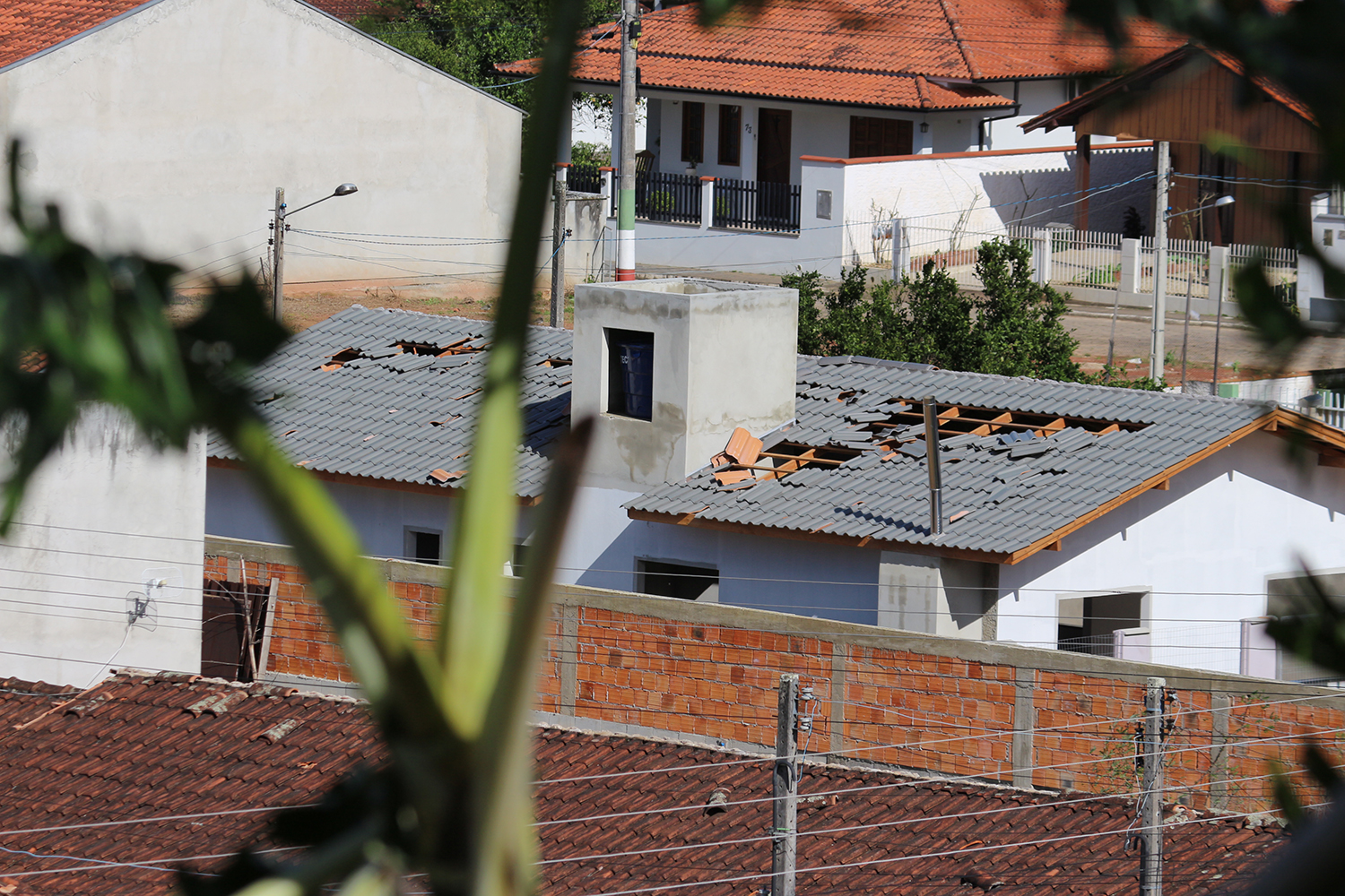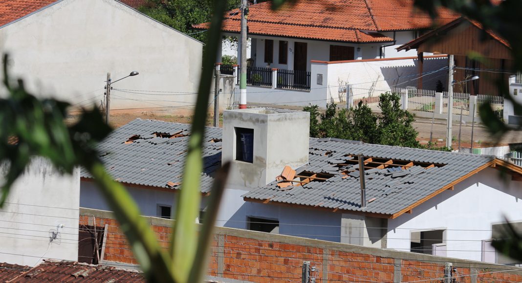 Centenas de casas foram atingidas, principalmente em seus telhados, além de imóveis públicos, como a Prefeitura, o ginásio de esportes Inácio Gullini, cuja cobertura de zinco ficou quase toda retorcida, e a passarela do Colégio Mazzola sobre a rua dos Imigrantes.