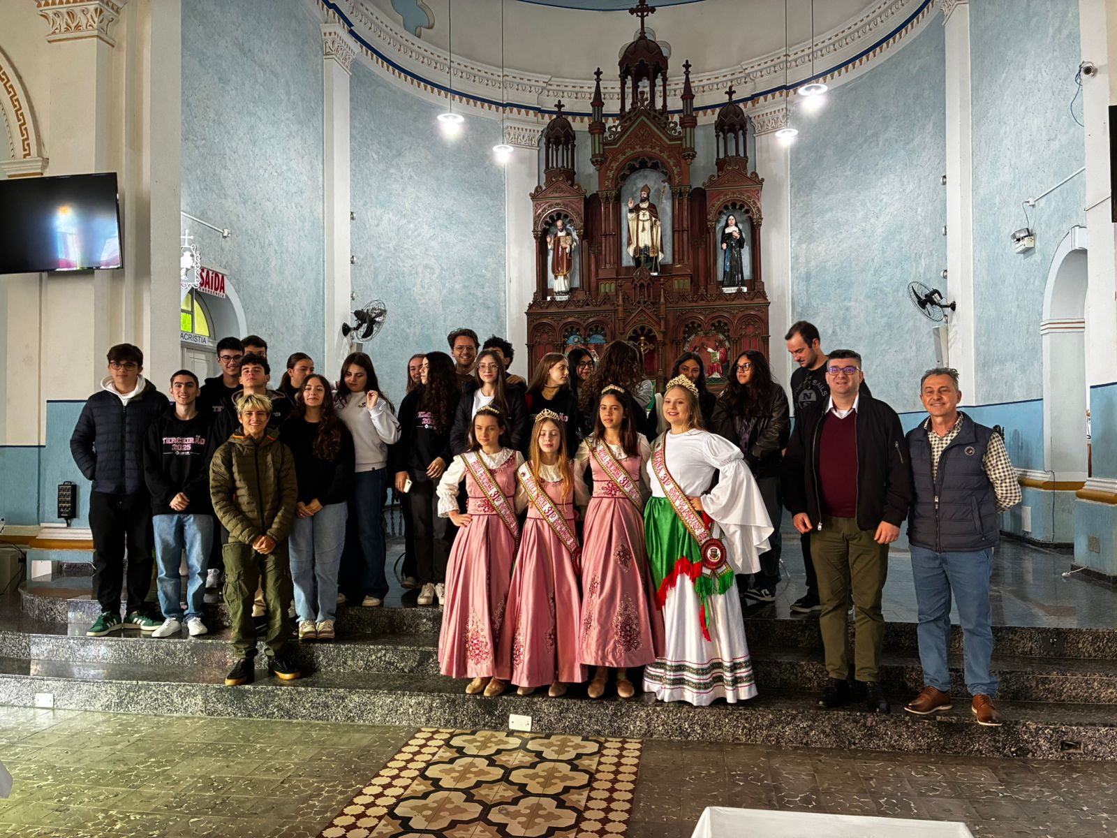 Um grupo de 20 estudantes de ensino médio, acompanhados por outros quatro professores e padres do Instituto Leone Dehon, da cidade de Monza, na região da Lombardia, no norte da Itália, participantes de intercambio promovido pelo Colégio São Luiz, de Brusque, estiveram em Nova Trento, terça-feira, 29, visitando os principais pontos turísticos do município. Vários deles revelaram encantamento pelo que viram e ouviram, especialmente quanto a manutenção da “italianidade” (costumes, modo de falar e a comida) dos neotrentinos.