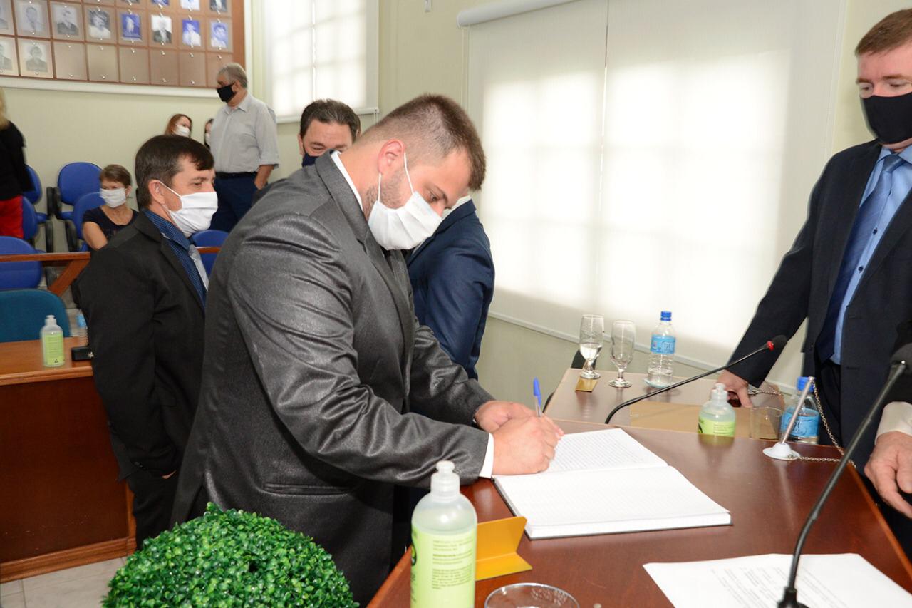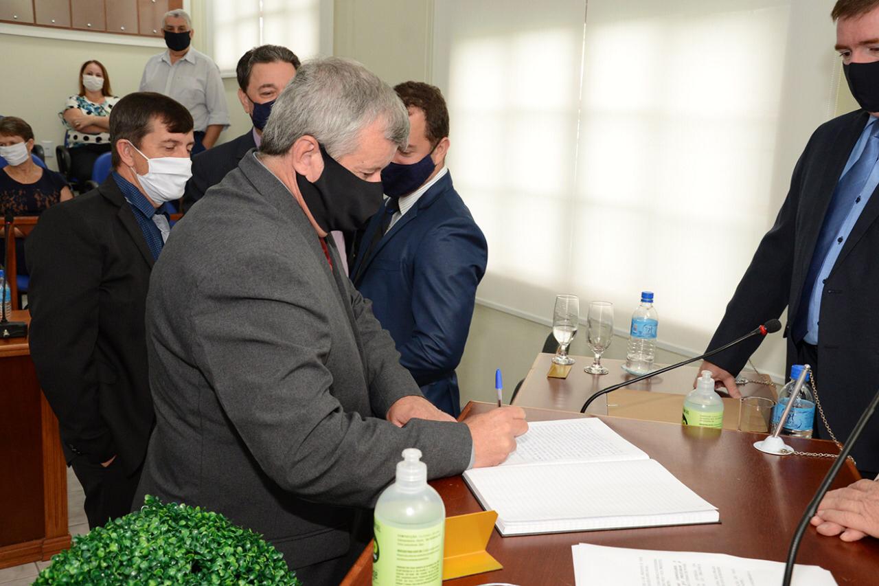 Como mais votado em 15 de novembro a atendendo o disposto no regimento interno do Legislativo, o vereador Joel Garbari abriu a sessão solene, que envolveu inicialmente a apresentação dos diplomas de todos os eleitos, seguida de juramento e assinatura do tempo de posse.