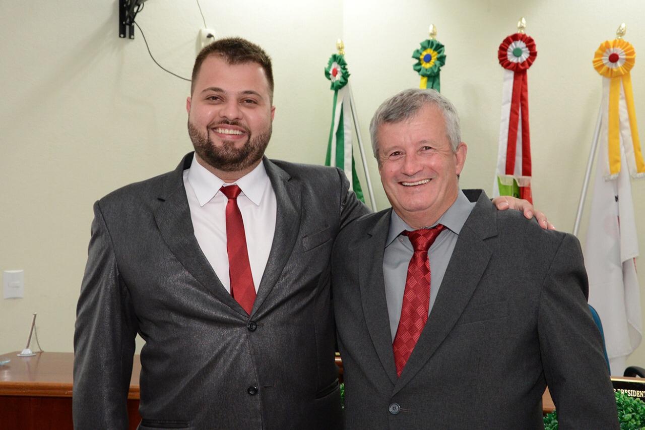 Tiago Dalsasso fazendo seu juramento; abaixo, seu vice, Moacir Dalla Brida. Foto: Divulgação