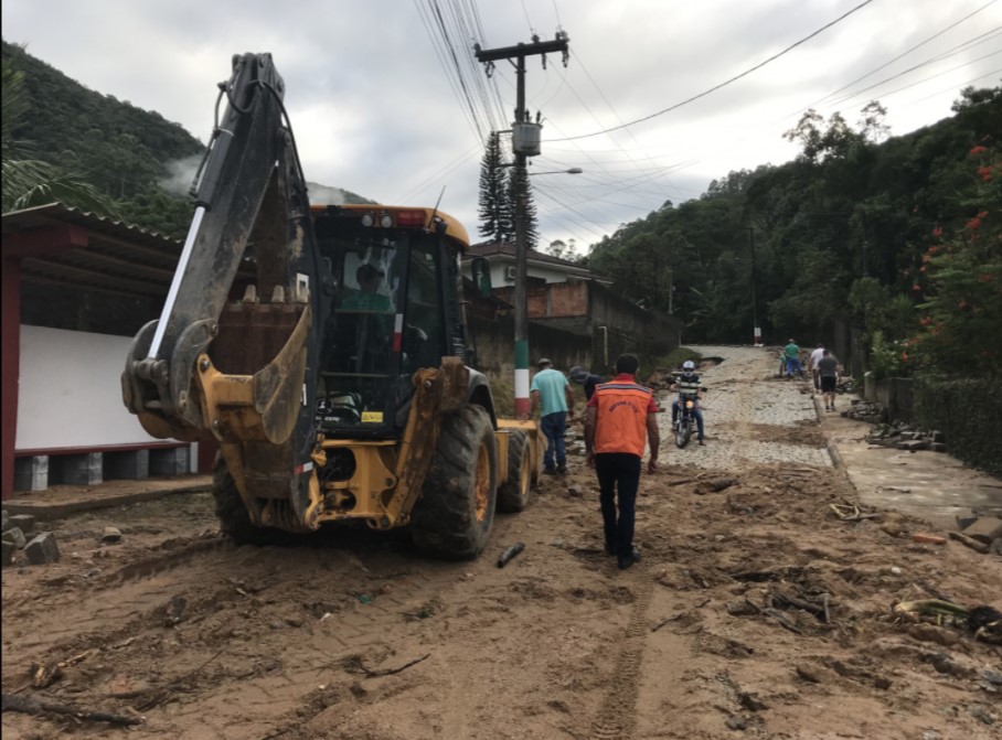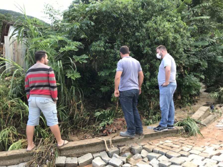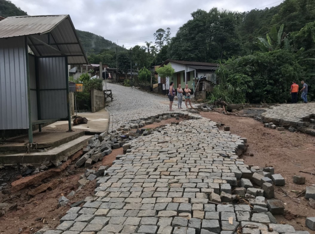 Os danos maiores se concentraram no bairro do Mato Queimado, no qual a enxurrada causou carreamento da pavimentação de trecho na Rua Tijucas. O mesmo aconteceu em trecho de rua no bairro São Roque. Ocorreram ainda deslizamentos com queda de barreiras e interrupção parcial de vias nos bairros Mato Queimado e Claraíba.