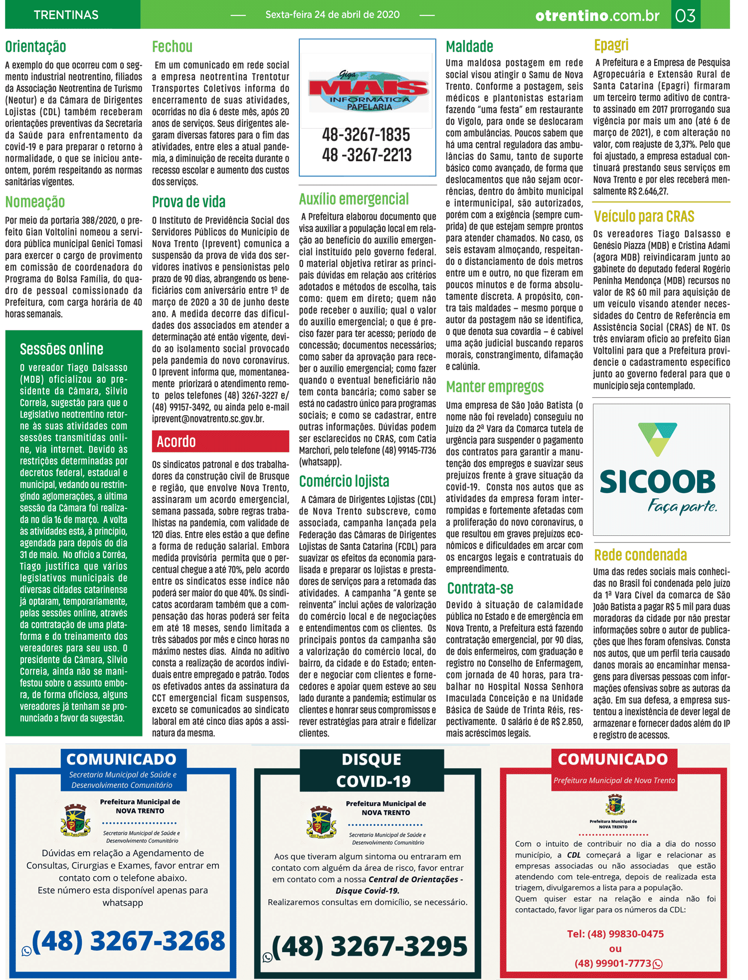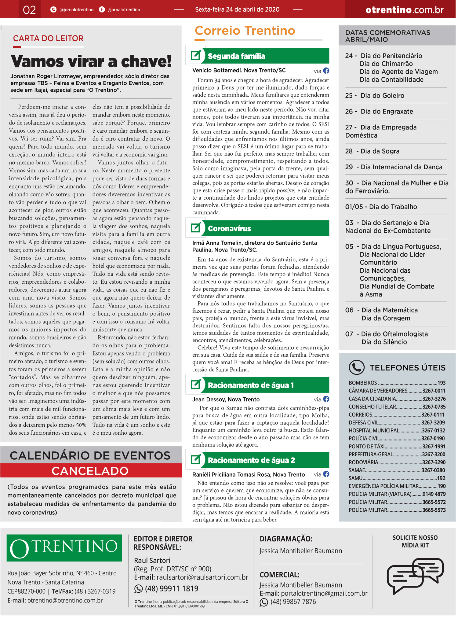 Comunidade Edição 507: Confira a edição impressa do jornal O Trentino desta semana Por O Trentino - 24/04/2020 17:33 865 Edição 507 veiculada em 24/04/2020 Facebook TwitterCaso tenha dificuldades na visualização da edição 507,solicite PDF completo através do email: portalotrentino@gmail.com NOTÍCIAS RELACIONADAS+ NOTÍCIAS DO AUTOR Comunidade Edição 750 Impressa – Jornal O Trentino Comunidade Edição 749 Impressa – Jornal O Trentino Comunidade Edição 748 Impressa – Jornal O Trentino Comunidade Nova Trento está recebendo a maior ultramaratona da América Latina Comunidade Sine tem 59 vagas de emprego no momento Deixe um comentário Cancelar a resposta Por favor, digite seu comentário Por favor, digite seu nome Você digitou um email inválido Por favor, digite seu email Current ye@r * Leave this field empty