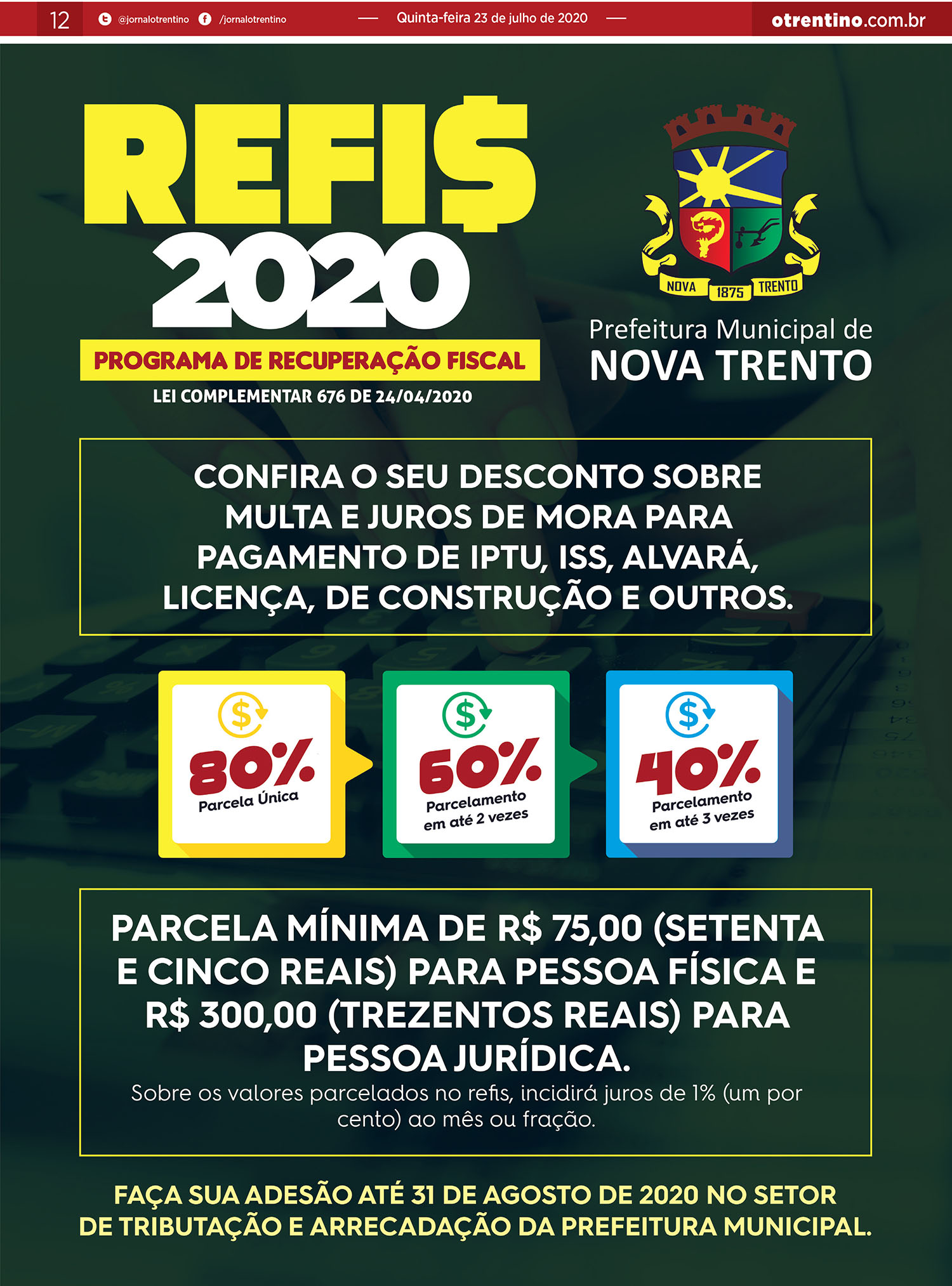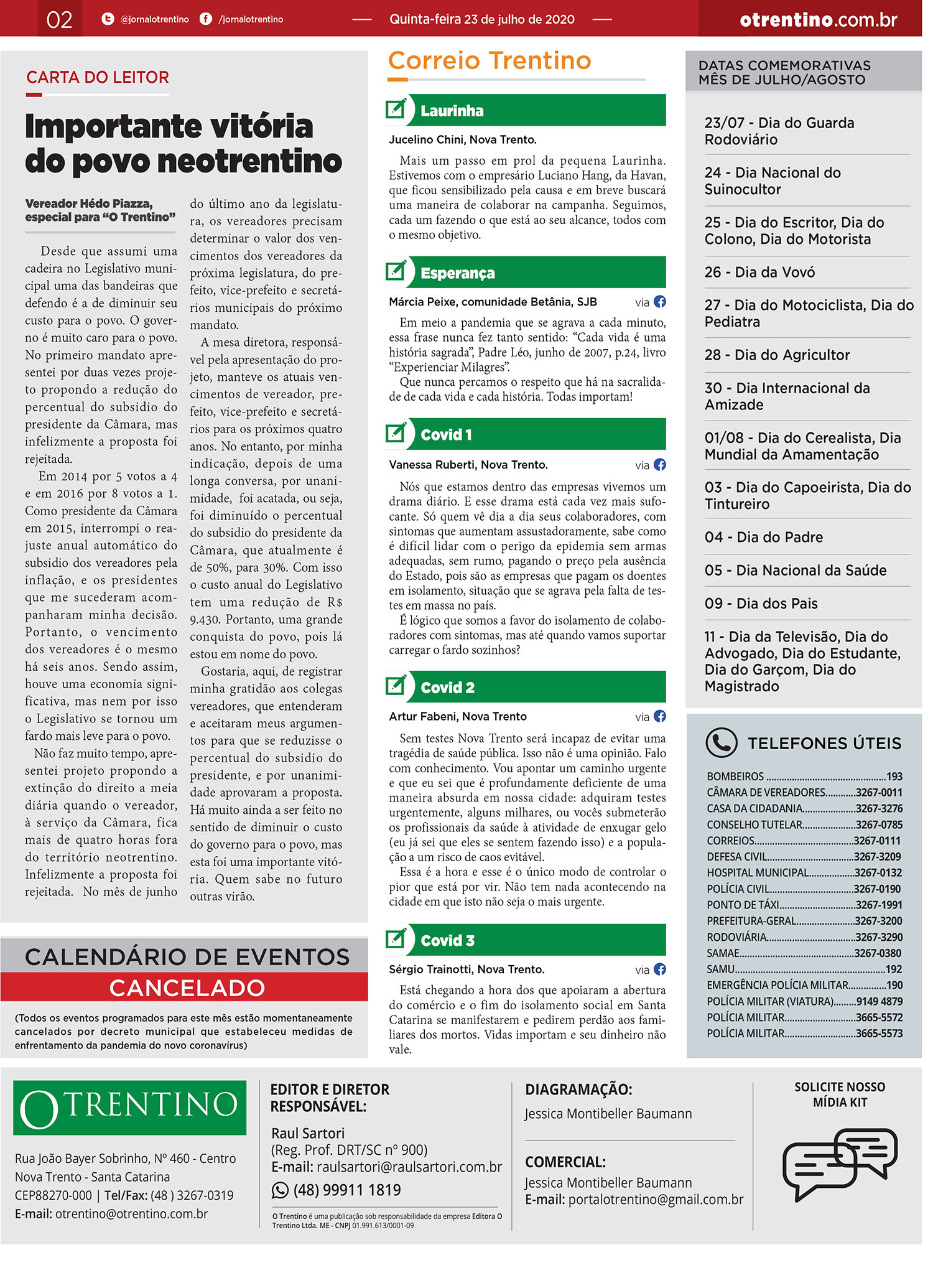 Comunidade Edição 512: Confira a edição impressa do jornal “O Trentino” desta semana Por O Trentino - 23/07/2020 13:56 621 Facebook Twitter Facebook TwitterCaso tenha dificuldades na visualização da edição 513,solicite PDF completo através do email: portalotrentino@gmail.com NOTÍCIAS RELACIONADAS+ NOTÍCIAS DO AUTOR Comunidade Edição 763 Impressa – Jornal O Trentino Comunidade Edição 761 Impressa – Jornal O Trentino Comunidade Edição 760 Impressa – Jornal O Trentino Comunidade Missas celebrarão passagem da Quarta-feira de Cinzas Comunidade NT terá Pró-Cidadão para atender melhor a população Deixe um comentário Cancelar a resposta Por favor, digite seu comentário Por favor, digite seu nome Você digitou um email inválido Por favor, digite seu email Current ye@r * Leave this field empty