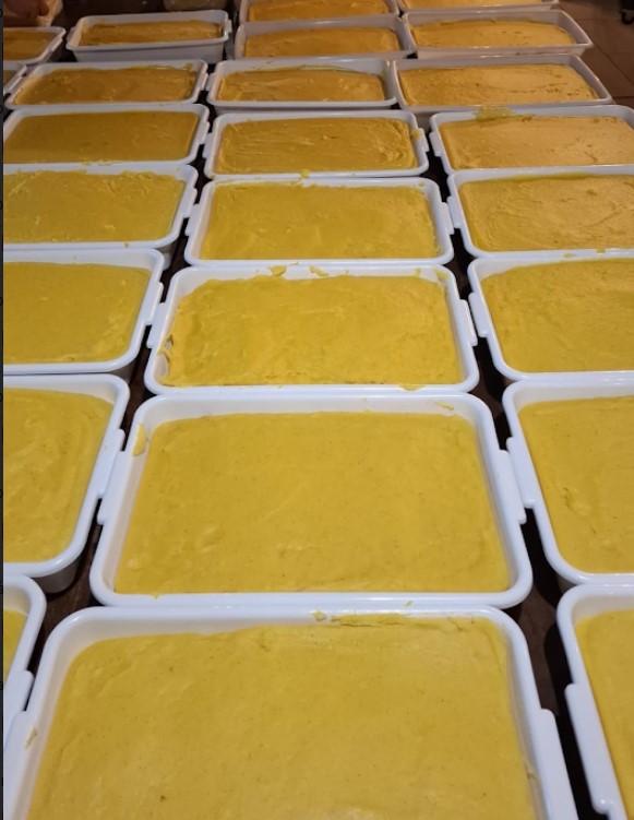 As polentas foram produzidas por um grupo de 16 voluntários, que se dedica a isso há décadas. Quem cedeu o espaço para sua produção foi o Sitio Nona Lurdes. A primeira polenta entrou no fogo às 14h45 de terça-feira, 30, e a última saiu as 21 horas.