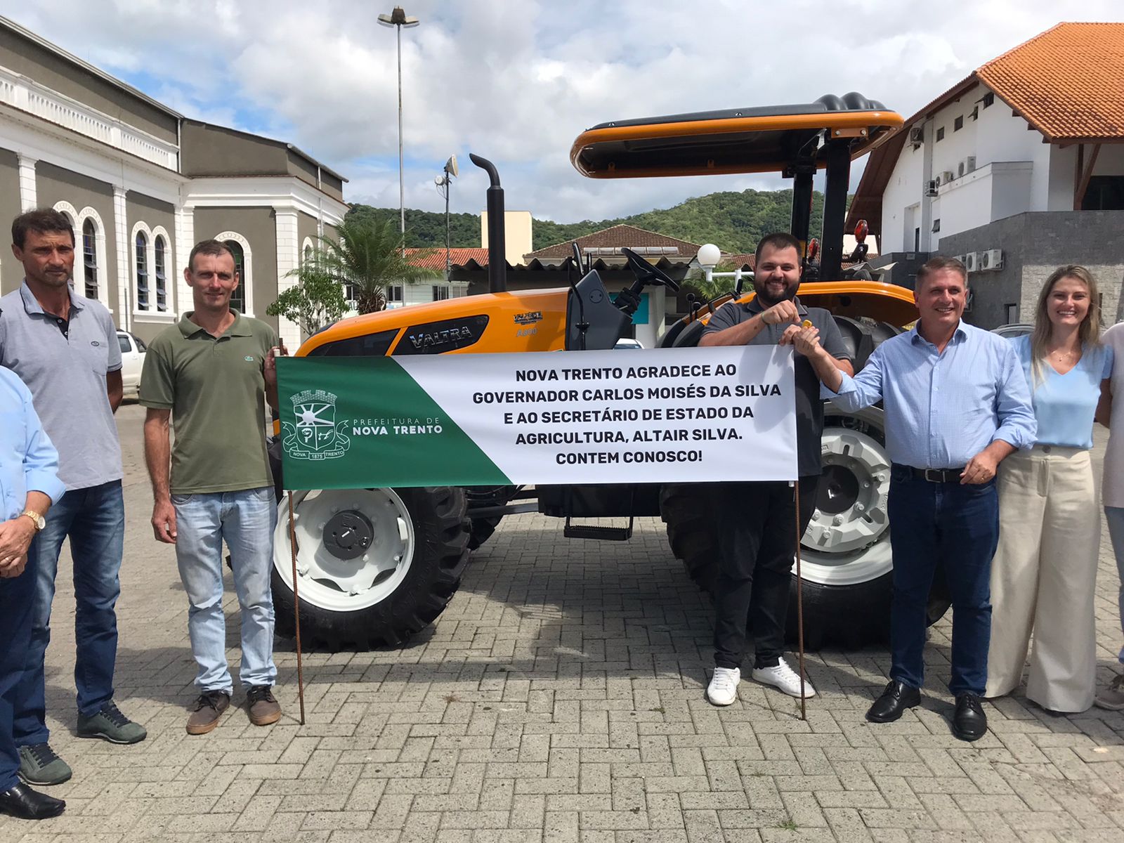 Em uma recepção partidariamente ecumênica – já que reuniu políticos de vários partidos – o secretário de Estado da Agricultura, Altair Silva, que é deputado estadual pelo  PP e nascido em Major Gercino, esteve em Nova Trento terça-feira, 15, para entregar um tratar Valtra, para a Prefeitura (foto). Com implementos (arado, grade, carreta basculante, ensiladeira e grampos) que chegarão em 10 dias, será logo incorporado à frota da Secretaria da Agricultura e Meio Ambiente.