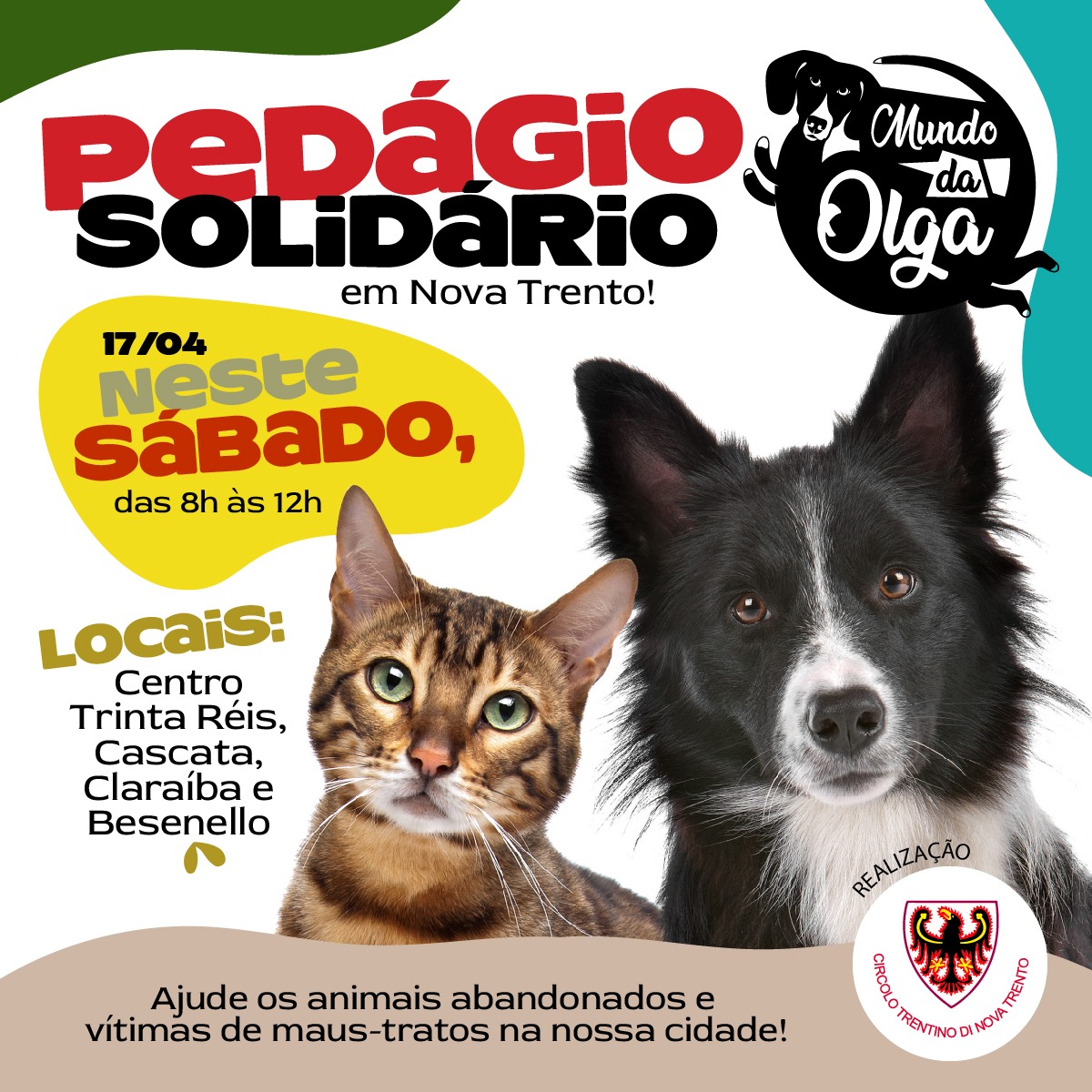 O Circolo Trentino de Nova Trento promove o neste sábado, 17, o primeiro pedágio em prol do Mundo da Olga, projeto social integrado por voluntários e protetores independentes, que ajudam animais de rua e em situação de maus-tratos em Nova Trento.
